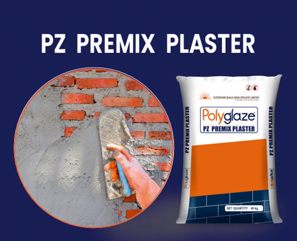 Polyglaze PZ Premix Plaster is a strong, durable, pre-mixed powder suitable for plastering over all types of old or new conventional clay bricks, fly ash bricks / blocks / Autoclaved Aerated Concrete blocks (AAC), concrete surfaces and stone walls. Being premixed with performance enhancing additives it is superior to conventional sand-cement plaster. It gives excellent adhesive strength, durability and enhances the life of subsequent product application
