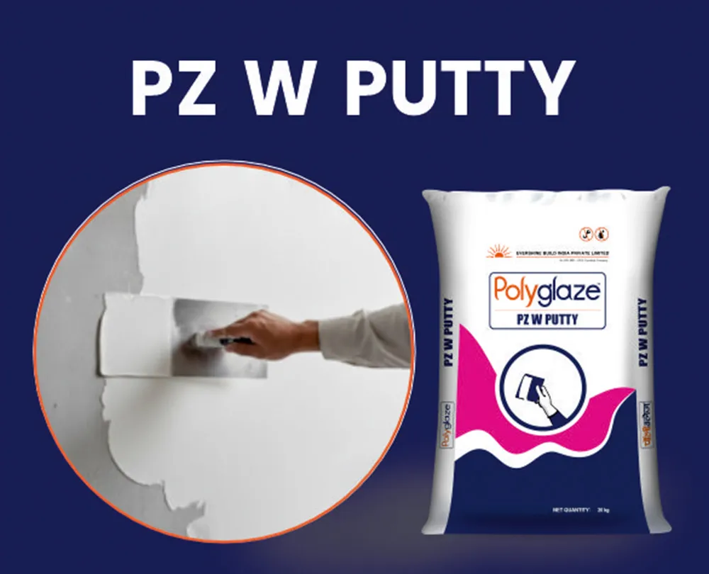 Polyglaze PZ W Putty is a white cement based putty, ideal for use on concrete / mortar, internal / external walls and ceilings. It fills the fine pores of mortar / concrete walls and ceilings thereby providing a white, smooth and dry surface essential for painting. It gives excellent adhesive strength, durability and enhances the life of paints.