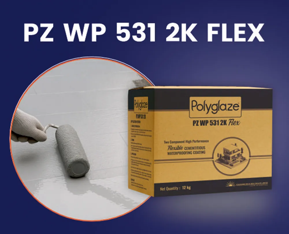 Polyglaze PZ WP 531 2K Flex is a high-performance, two-component, acrylic cementitious flexible coating system designed for comprehensive waterproofing. This versatile formulation, offers excellent flexibility for crack bridging and strong adhesion to concrete and masonry surfaces. It is ideal for waterproofing wet areas, swimming pools, and other water-retaining structures.